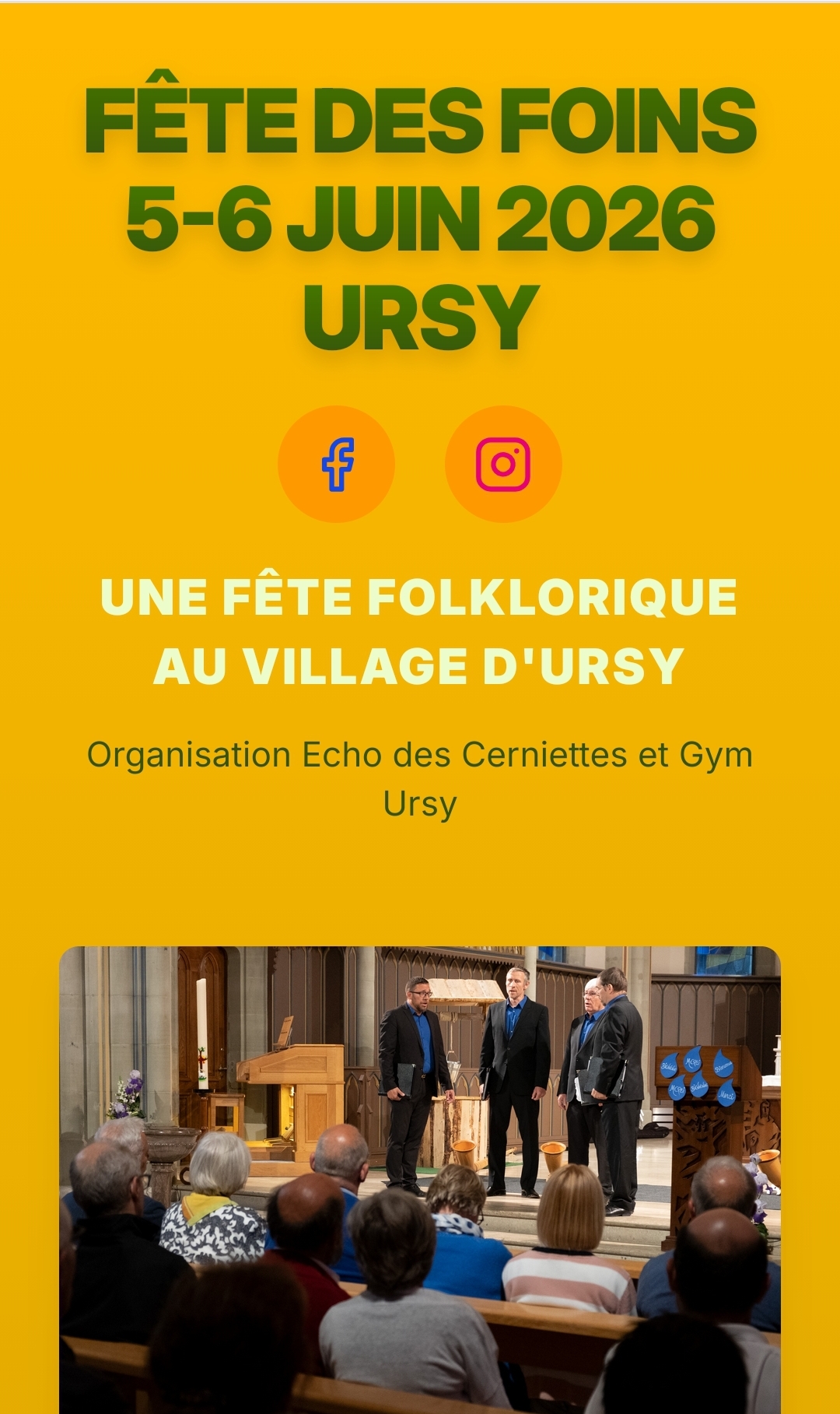 | 06-06-2026 | 11h00 | Fête des foins | URSY ~11h00 et 17h00 | Public |